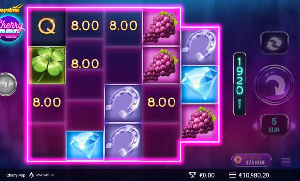 Instead of waiting to trigger the bonuses, CherryPop allows players to purchase it for x75 the stake.